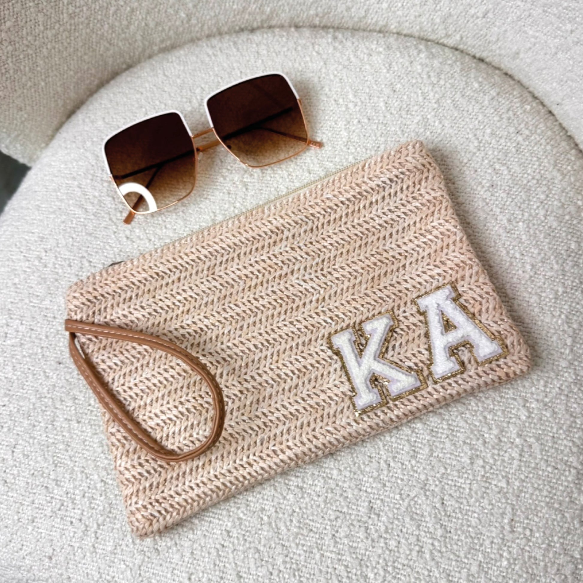 Soak up the Summer sun in style with our must have Personalised Beach Clutch with teddy patch glitter initials! Featuring an easy zip fastening and secure wrist handle..this really is the perfect clutch for beach or poolside. Jet setting off on a girly hen do? Make sure you're all matching in style with our must have glitzy luxury clutch bags! The perfect size for all your girly essentials.
